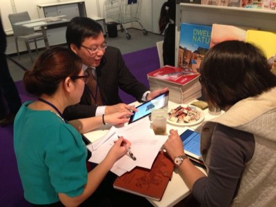 據(jù)鳳凰空間李副總經(jīng)理,版權(quán)經(jīng)理吳紅敏、陳尚婷介紹,我社在5天的書展上,與近40家境外出版、代理機構(gòu)的版權(quán)負責(zé)人進行了約見,其中既有美國的普林斯頓(Princeton)建筑出版社,Parkstone International,Architecture, Art;英國的勞倫斯·金(Laurence King)出版社,PAPADAKIS;新加坡的RHED出版社,Basheer Graphic Books;印度的DataWork;德國的細部(Detail)出版社,Blottner Verlag GmbH;澳大利亞的圖像(Images)出版集團,意大利的Mondadori Electa出版社;瑞士的Braun出版社;韓國DAMDI出版社;日本的X-Knowledge出版社等多家出版公司,達成了五十多本圖書與雜志的版權(quán)引進、版權(quán)輸出、共版圖書意向,并現(xiàn)場簽約西班牙a+t雜志兩本。