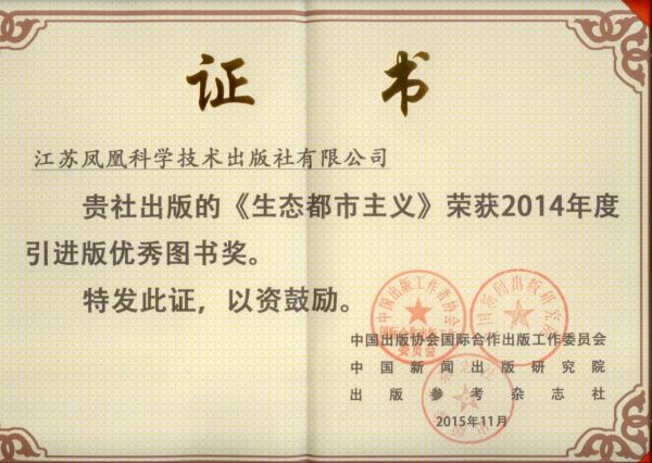 《生態(tài)都市主義》榮獲2014年度引進(jìn)版優(yōu)秀圖書獎