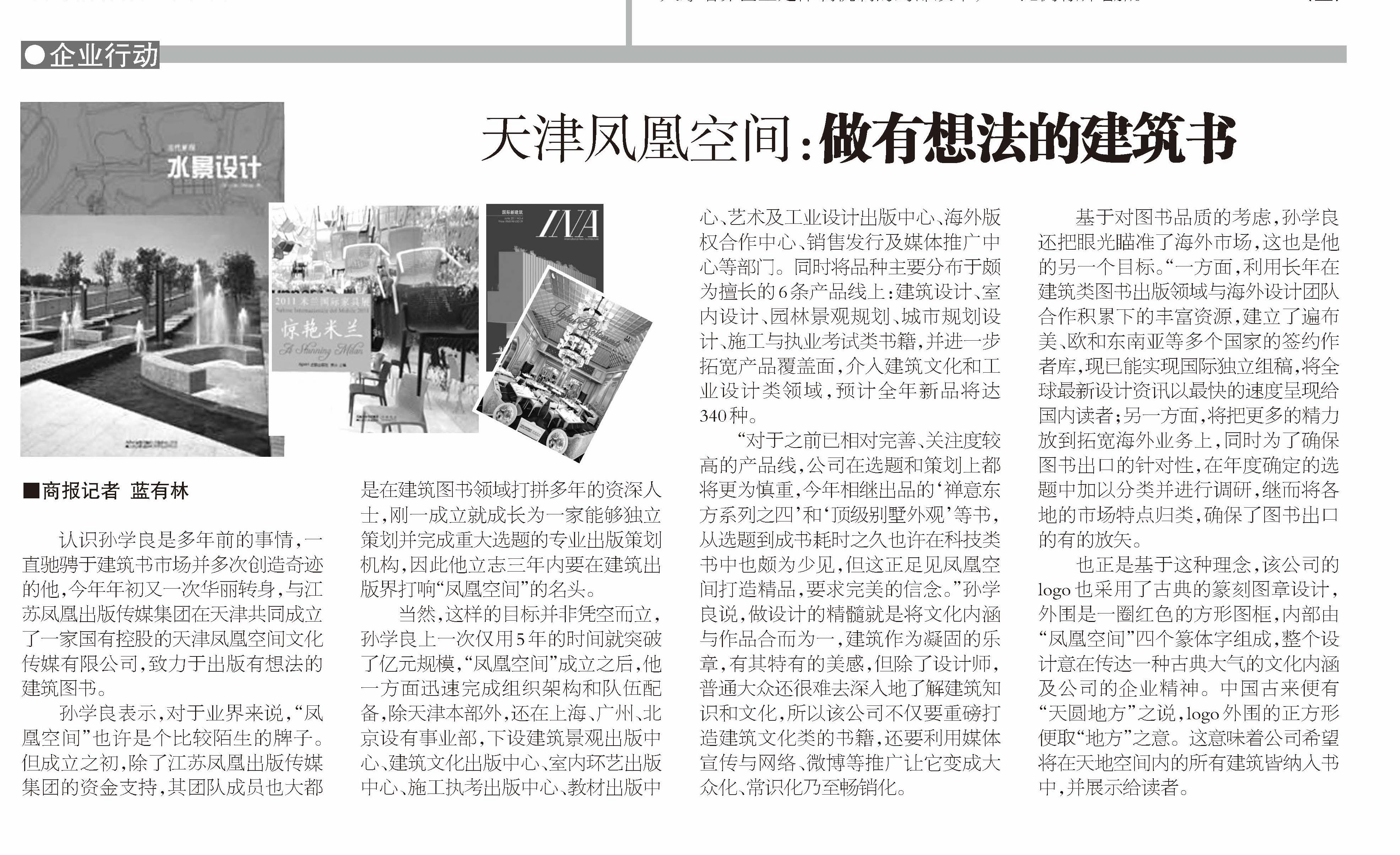 認(rèn)識(shí)孫學(xué)良是多年前的事情,一直馳騁于建筑書(shū)市場(chǎng)并多次創(chuàng)造奇跡的他,今年年初又一次華麗轉(zhuǎn)身,與江蘇鳳凰出版?zhèn)髅郊瘓F(tuán)在天津共同成立了一家國(guó)有控股的天津鳳凰空間文化傳媒有限公司,致力于出版有想法的建筑圖書(shū)。