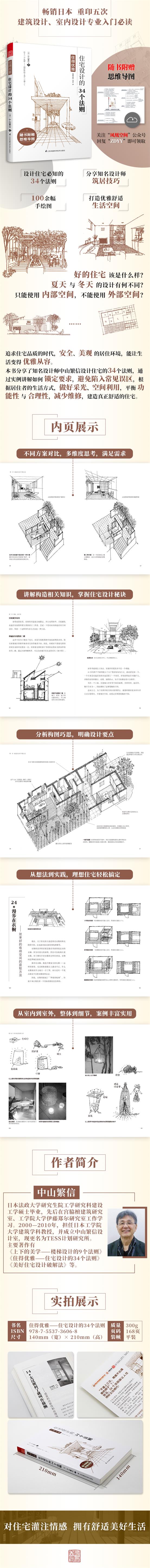 本書用樸實(shí)的語言,結(jié)合超過100幅的純手工繪圖和超過30幅的住宅真實(shí)照片,全面清晰的將住宅設(shè)計(jì)的34個(gè)法則娓娓道來。