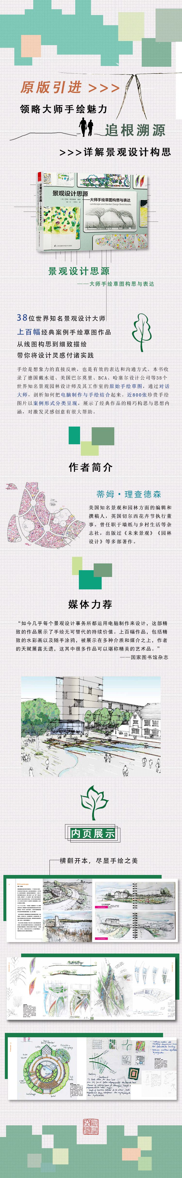 《景觀(guān)設(shè)計(jì)思源——大師手繪草圖構(gòu)思與表達(dá)》通過(guò)38位頂尖景觀(guān)設(shè)計(jì)師的手繪和草圖速寫(xiě)作品,從簡(jiǎn)單的線(xiàn)圖構(gòu)思到細(xì)部的精致描繪,向設(shè)計(jì)從業(yè)者以及學(xué)生展示了他們?cè)O(shè)計(jì)靈感的來(lái)源以及如何將這些靈感付諸實(shí)踐到每一個(gè)具體的項(xiàng)目中。這些經(jīng)典案例的藝術(shù)美感以及快速手繪表達(dá)為讀者提供了學(xué)習(xí)和臨摹的完美資料?!毒坝^(guān)設(shè)計(jì)思源——大師手繪草圖構(gòu)思與表達(dá)》試讀于景觀(guān)園林設(shè)計(jì)師,景觀(guān)設(shè)計(jì)專(zhuān)業(yè)的師生。