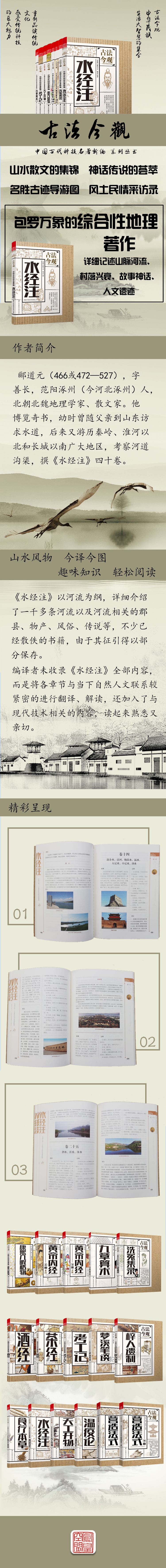 《水經(jīng)注》共四十卷,但編譯者并沒有收錄全部內(nèi)容,而是將各章節(jié)與當(dāng)下自然人文聯(lián)系較緊密的內(nèi)容進(jìn)行翻譯、解讀,讓讀者能用最小的閱讀量,在最短時(shí)間內(nèi)領(lǐng)略《水經(jīng)注》的魅力!此外,編譯者還加入了與現(xiàn)代技術(shù)相關(guān)聯(lián)的知識(shí)性、趣味性版塊,以古樸典雅的設(shè)計(jì)風(fēng)格和“有用有趣”的內(nèi)文激發(fā)廣大讀者的閱讀欲望。