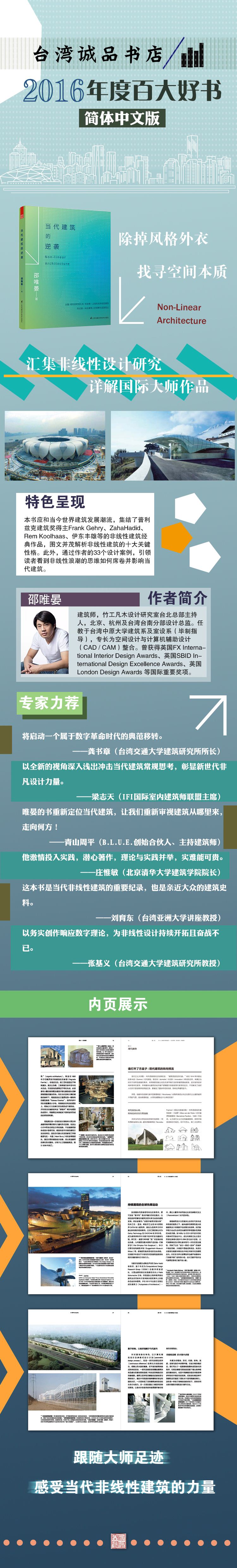 邵唯晏以多年非線性設(shè)計實踐的積累和認知,應和當今世界建筑發(fā)展的潮流,認為建筑設(shè)計必將反映當代思維的理念,數(shù)字技術(shù)將構(gòu)成當今和未來影響建筑設(shè)計思維最本質(zhì)的動機,其觀點鮮明,具有啟發(fā)性。邵唯晏潛心研究了眾多國際大師的非線性設(shè)計作品,深入解析了非線性設(shè)計的十大特質(zhì)。這不是簡單的設(shè)計方法的概念,也不是簡單的非線性設(shè)計方法的匯集,而是對非線性設(shè)計一次深刻的思考,值得業(yè)界同行參考和借鑒。