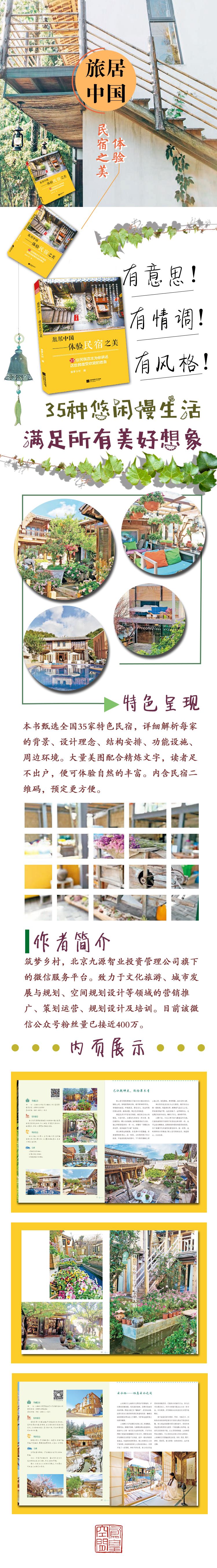 精心甄選35家民宿案例,遍布大江南北,風(fēng)格迥異,各具特色。每個(gè)案例都有介紹民宿老板的個(gè)人經(jīng)歷、感受,談及心中最美的情懷。每個(gè)案例中都有路線、周邊景點(diǎn)推薦,民宿詳細(xì)的介紹及價(jià)格說明。還有二維碼推薦,感興趣一掃即可了解、預(yù)定。
