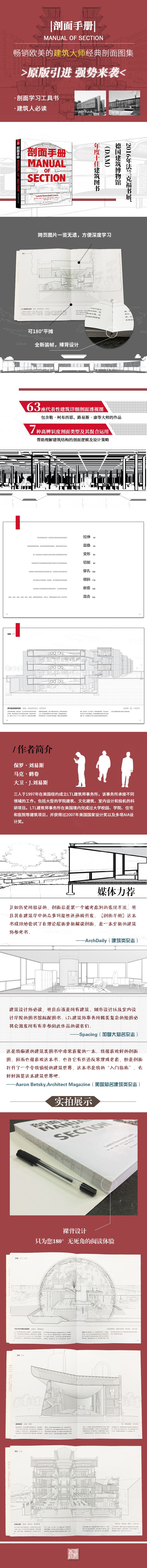 書中通過(guò)對(duì)剖面的概述,讓讀者理解剖面的由來(lái)、演變、作用和意義等;通過(guò)對(duì)建筑剖面的分類,讓讀者們更明確地知曉剖面的功能性體現(xiàn)和直觀的設(shè)計(jì)概念;通過(guò)展現(xiàn)近現(xiàn)代建筑大師經(jīng)典作品的剖面圖集,讓讀者們更充分地領(lǐng)略大師們的設(shè)計(jì)策略和技巧。
