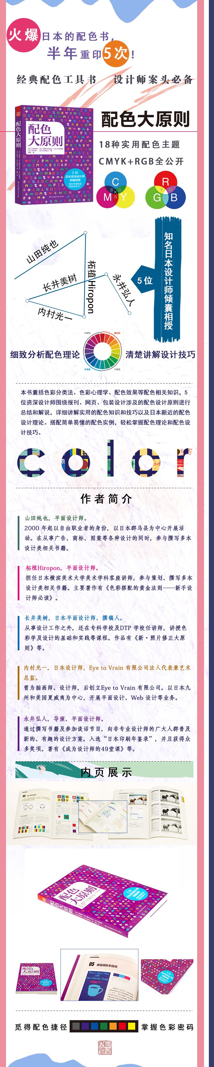 這本書是一本囊括色彩分類法、色彩心理學(xué)、配色效果等配色相關(guān)知識的書,5 位日本資深設(shè)計師圍繞報刊、網(wǎng)頁、包裝設(shè)計時所涉及的配色設(shè)計原則進(jìn)行了總結(jié)和解說,在書中為你詳細(xì)講解實用的配色知識和技巧,以及日本最新的配色設(shè)計理論。通過簡單易懂的配色實例,讓你輕松掌握配色理論和配色設(shè)計的技巧!