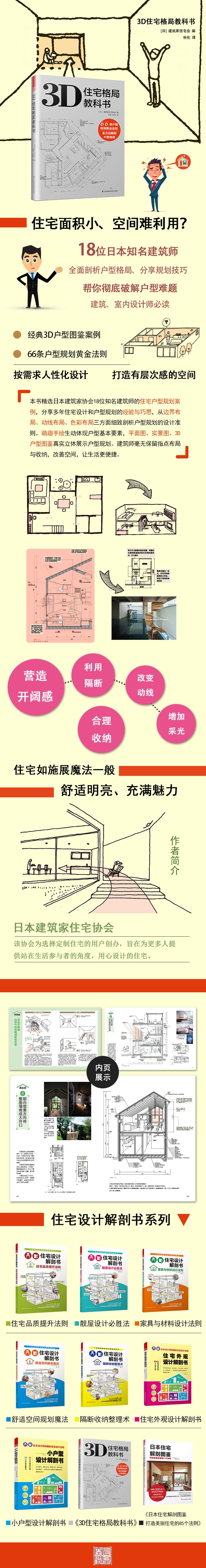 目前市場上關(guān)于戶型規(guī)劃、戶型改造的書很多, 而《3D住宅格局教科書》不單單解析戶型規(guī)劃的技巧,更通過3D戶型圖鑒真實(shí)、立體得展示戶型規(guī)劃,便于讀者理解,給予讀者更直觀的感受。而且每個(gè)章節(jié)前通過生動(dòng)的手繪來描述戶型規(guī)劃中的基本要素。