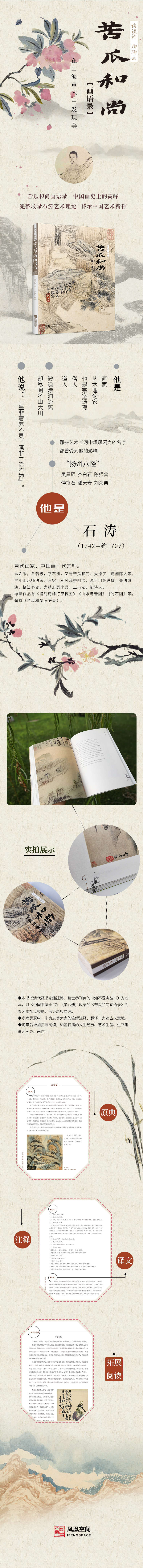 這樣的好書(shū)實(shí)在不忍讓你錯(cuò)過(guò)。石濤《苦瓜和尚畫(huà)語(yǔ)錄》不僅是中國(guó)畫(huà)史上的高峰,也是了解中國(guó)藝術(shù)精神的好選擇。每一個(gè)熱愛(ài)中國(guó)藝術(shù)的人都能在山海草木中發(fā)現(xiàn)美,發(fā)現(xiàn)自我。