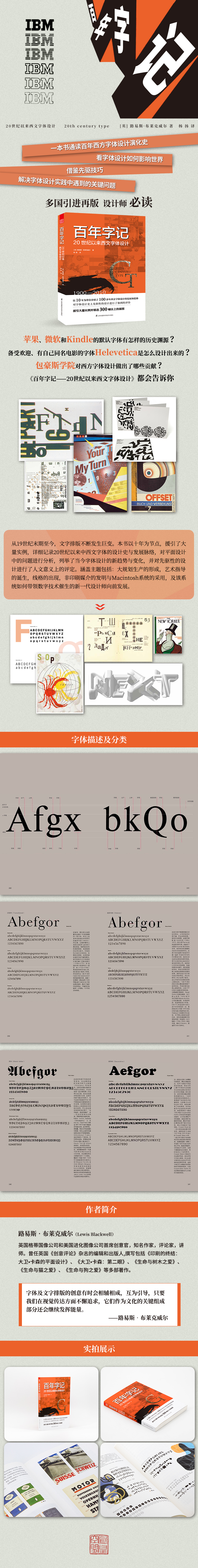 世界上受歡迎、甚至有自己同名電影的英文字體Helevetica是怎么誕生的?設(shè)計(jì)史中著名的包豪斯學(xué)院對(duì)西方字體設(shè)計(jì)做出了哪些貢獻(xiàn)?蘋果、微軟和Kindle選擇的默認(rèn)字體背后又有什么樣的歷史淵源和故事?這些問題,在《百年字記——20世紀(jì)以來西文字體設(shè)計(jì)》這本書中都能找到答案。
