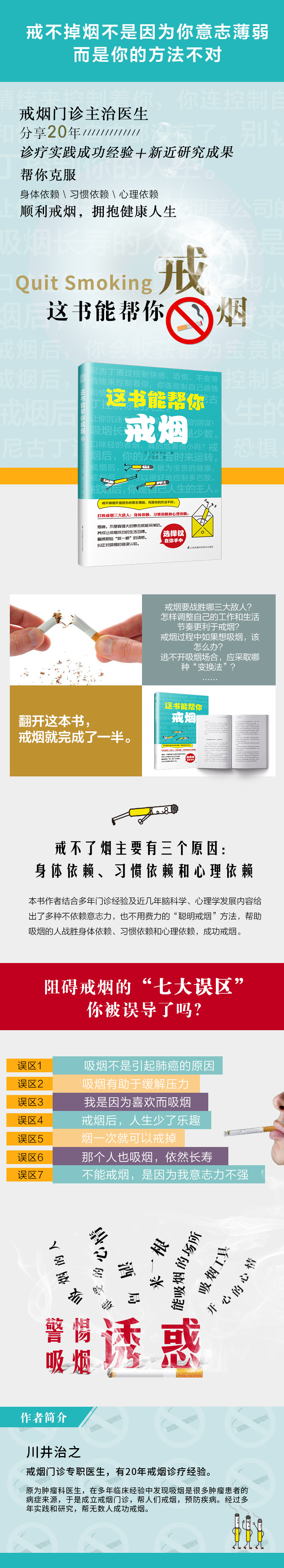 你為什么不能戒煙?想戒煙必須要克服的三大敵人是誰?如何調(diào)整自己的工作和生活節(jié)奏更利于戒煙?如何才能保證不再復(fù)吸?......都是這本書詳細(xì)剖析的內(nèi)容。