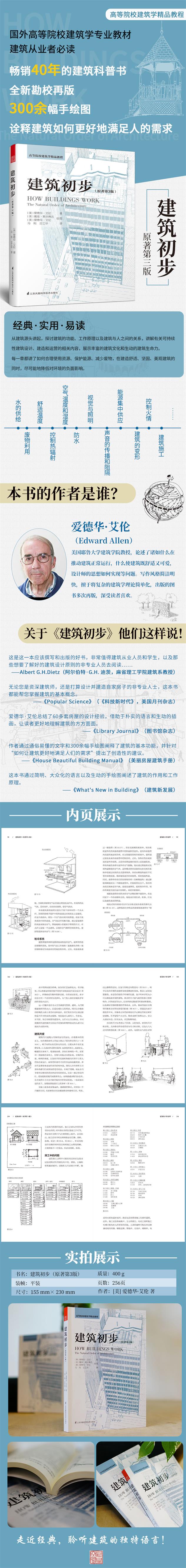 愛德華·艾倫的寫作風格簡潔明快,能將復(fù)雜的建筑學理論簡單化,本書具有很強的實用性和借鑒性。無論經(jīng)驗豐富的建筑學教師、建筑從業(yè)者,還是建筑學專業(yè)的學生,都能從《建筑初步》中得到啟發(fā)。