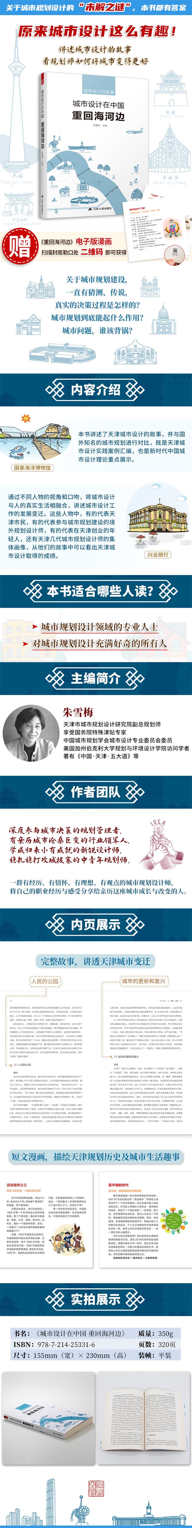 《城市設(shè)計在中國 重回海河邊》講述了天津城市設(shè)計的故事,并與國外著名的城市規(guī)劃進行對比。該書通過不同人物的視角和口吻,講述著天津城市與城市設(shè)計工作的發(fā)展變遷。這些人物中,有的代表了天津城的廣大市民,有的代表了眾多參與城市規(guī)劃建設(shè)的境外規(guī)劃設(shè)計師,有的代表了在天津和濱海新區(qū)創(chuàng)業(yè)的年輕人,還有的是天津幾代城市規(guī)劃設(shè)計師的集體畫像。通過他們的故事記述天津城市設(shè)計取得的成績。本書既是天津城市設(shè)計實踐案例的匯編,更是新時代中國城市設(shè)計理論重點內(nèi)容的展示。
