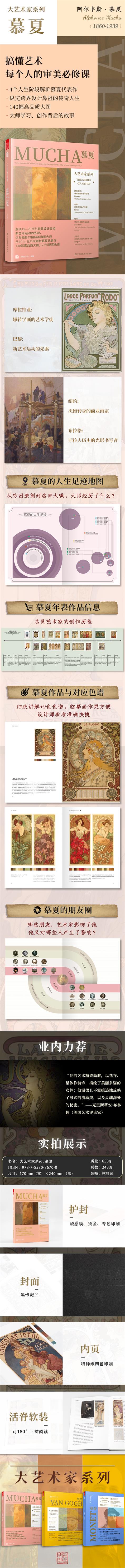 阿爾方斯?慕夏(穆夏),從幾乎餓死的流浪漢的到新藝術(shù)運動代表藝術(shù)家,其間設(shè)計做過招貼畫、廣告畫;畫過包裝插畫、裝飾畫;做過首飾設(shè)計、雕塑設(shè)計、建筑設(shè)計;還當(dāng)過攝影師,老年專心油畫。這位擅長表現(xiàn)甜而不膩,美而不俗的跨界大藝術(shù)家的人生沖滿浪漫和傳奇色彩,其生活經(jīng)歷和藝術(shù)創(chuàng)作的豐富性令人稱奇。本書通過多家博物館和合作,系統(tǒng)梳理了慕夏生活和藝術(shù)設(shè)計精彩故事。該書將帶領(lǐng)讀者深入了解慕夏如何從食不果腹的畫家到一代藝術(shù)大家。