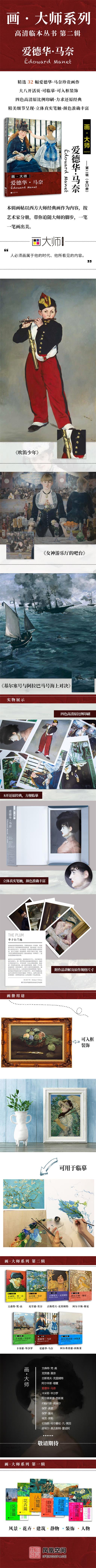本系列畫帖以西方大師經(jīng)典畫作為內(nèi)容,主要以臨摹、賞飾為主,按藝術(shù)家分冊(cè)。每?jī)?cè)32張精選大師代表作。深入考慮國(guó)內(nèi)讀者需求和審美習(xí)慣,規(guī)避不良題材和消極內(nèi)容,每?jī)?cè)作品精挑細(xì)選。每張作品輔以作者及作品扼要講解、說(shuō)明,并附原作規(guī)格尺寸,使讀者能夠更加深入地了解作者及原作,幫助讀者更準(zhǔn)確地理解作品,從而做到在理解的前提下欣賞,和更有目的地臨摹學(xué)習(xí)。本冊(cè)為愛德華?馬奈的作品,一本包括馬奈32幅珍貴畫作,《吹笛少年》《奧林匹亞》《伊爾瑪?布倫娜肖像》《圣雷札火車站》《草地上的野餐》……活頁(yè)散裝、方便臨習(xí),高清印刷、原作比例,是教學(xué)展示、學(xué)生臨摹的不二之選。