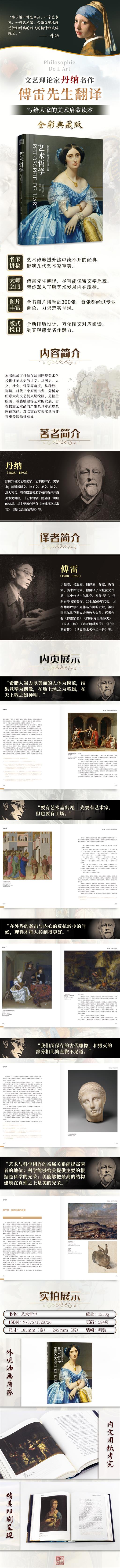 《藝術(shù)哲學(xué)》一書(shū)是由丹納在巴黎美術(shù)學(xué)校的美術(shù)史講座匯集而成。他認(rèn)為,藝術(shù)品的產(chǎn)生及藝術(shù)家的創(chuàng)作雖然看似偶然,但有其內(nèi)在規(guī)律,本書(shū)即從歷史、人文、社會(huì)、哲學(xué)等角度,從種族、環(huán)境、時(shí)代三個(gè)原則出發(fā),分析介紹了意大利文藝復(fù)興期的繪畫、尼德蘭的繪畫、希臘的雕塑等藝術(shù)的發(fā)展,旨在揭露藝術(shù)品的產(chǎn)生及其本質(zhì)以及內(nèi)在規(guī)律。