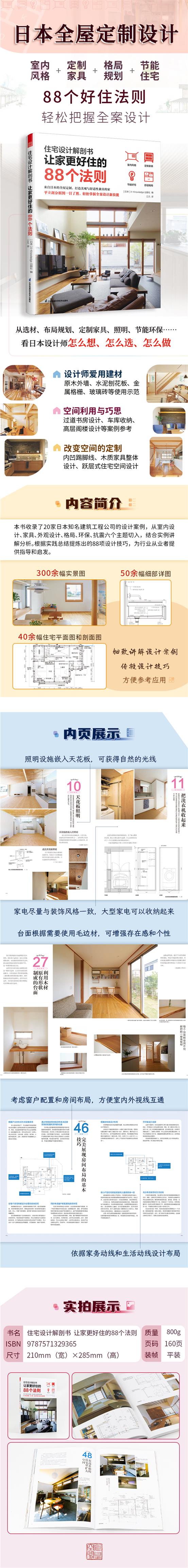 全書通過300余幅實(shí)景圖,50余幅大樣圖和40余幅住宅平面圖和剖面圖。細(xì)致、詳實(shí)的為讀者深度講解了設(shè)計(jì)案例,教授設(shè)計(jì)技巧,兼具藝術(shù)性和實(shí)用性。