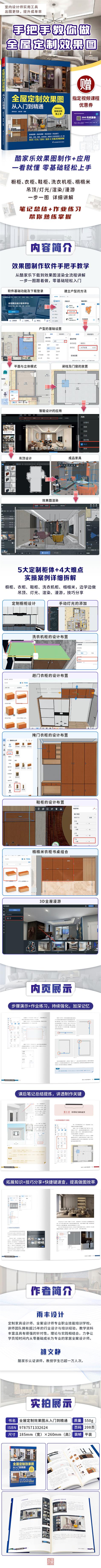 針對(duì)關(guān)鍵節(jié)點(diǎn)設(shè)立章節(jié)詳細(xì)解析,其中包括定制櫥柜設(shè)計(jì)、手動(dòng)燈光的添加、洗衣機(jī)柜的設(shè)計(jì)布置、榻榻米衣柜書(shū)桌組合、3D全屋漫游等。一步一圖,讀者可以邊學(xué)邊做,快速掌握。