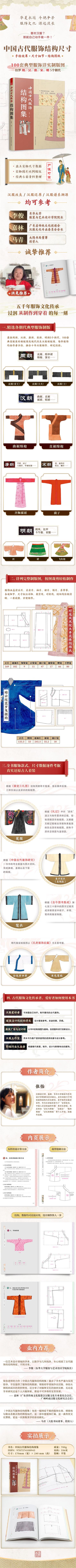 書中每件服飾均為作者手繪,并給出涵蓋衣長、通袖長、袖口寬、領(lǐng)緣寬、袖緣寬、裙寬、裙長等的尺寸表,以嚴謹?shù)陌嫘汀?shù)據(jù)展示每件衣服的前后片、左右片、袖片、裙片、領(lǐng)片、系帶等,各處細節(jié)尺寸標注詳細,裁剪線、對折線、縫紉線清晰,按圖裁剪、制作即可。介紹了裁剪、量體以及所需布料如何計算的方法,為古代服飾制作者、設(shè)計者、研究者、愛好者提供了較為詳盡的參考資料。