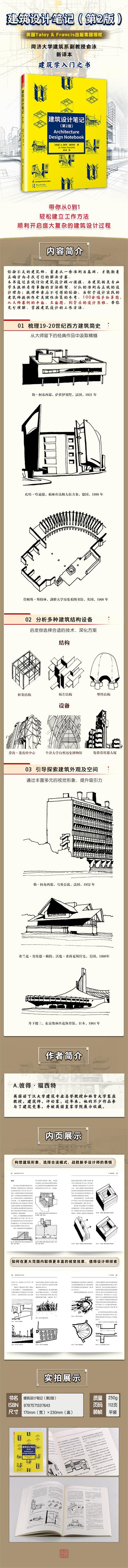 本書針對建筑設(shè)計學(xué)習(xí)的過程,對相關(guān)專業(yè)學(xué)生清晰提出了大學(xué)本科階段所要求的設(shè)計技能。本書提供了一些適用的原則及規(guī)范的設(shè)計做法,總結(jié)了平面、結(jié)構(gòu)、立面等諸多方面對建筑的影響,激勵建筑專業(yè)的學(xué)生要勇于面對挑戰(zhàn),拿出合適的解決方案克服困境,形成運(yùn)用專業(yè)的眼光看待事物的框架。這本書緊密圍繞建筑學(xué)專業(yè)學(xué)生的方案設(shè)計實(shí)踐,結(jié)合作者繪制的100多幅草圖,激發(fā)著學(xué)生們的設(shè)計思維。在第2版中,還增加了關(guān)于綠色建筑、城市空間類型和虛擬建筑的內(nèi)容,以適應(yīng)新的時代發(fā)展的需求。