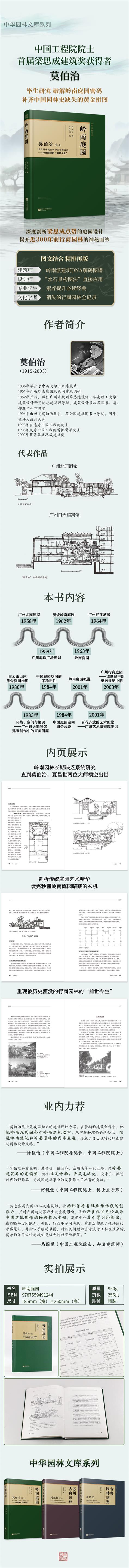 1. 是中國(guó)工程院首批資*深院士、設(shè)計(jì)大*師、首屆梁思成建筑獎(jiǎng)獲得者莫伯治先生自1958-2003年研究中國(guó)傳統(tǒng)園林的經(jīng)典著作。書(shū)中有對(duì)古典園林和當(dāng)代嶺南庭園發(fā)展的論述分析,也有其本人創(chuàng)作實(shí)踐與思維的回顧與總結(jié),是作者幾十年創(chuàng)作實(shí)踐和理論探索的重要成果。